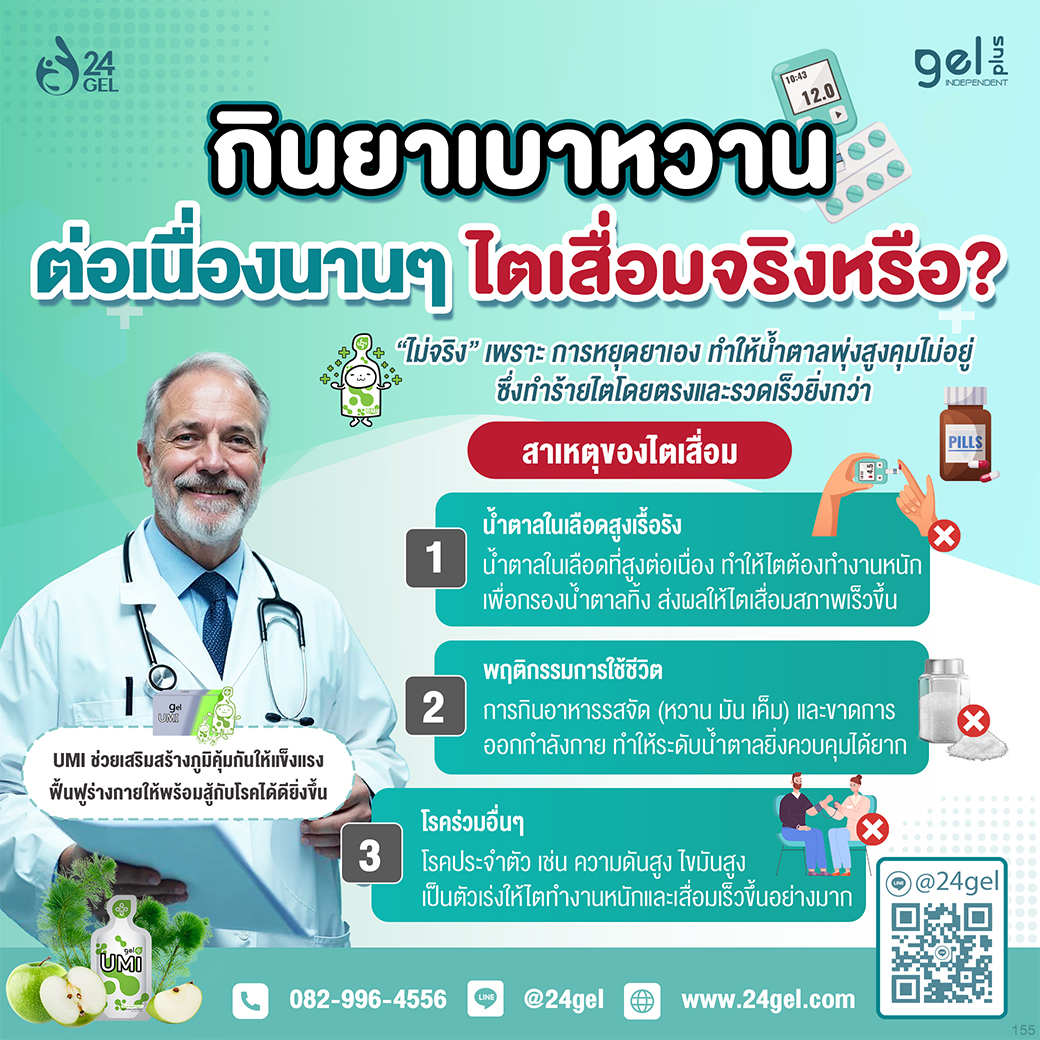 ดังนั้น การดูแลตนเองด้วยการควบคุมอาหาร ออกกำลังกาย และเสริมด้วยตัวช่วยดูแลสุขภาพ UMI ผลิตภัณฑ์อาหารเสริมรูปแบบเจลมีสารสกัดจากฟูคอยแดนจากสาหร่ายสีน้ำตาล ถือเป็นอีกทางเลือกที่ช่วยสนับสนุนการดูแลผู้ป่วยเบาหวานและลดภาระของไตได้ แถมยังช่วยเสริมสร้างภูมิคุ้มกันให้แก่ร่างกายได้